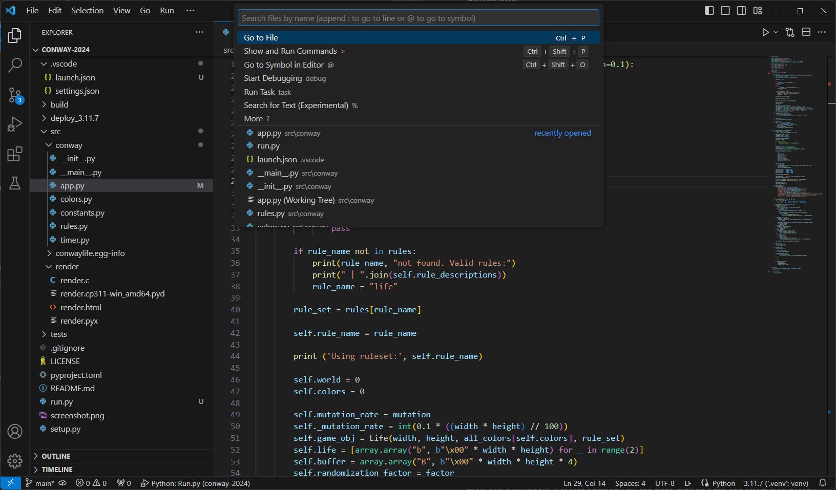 The command palette and file search